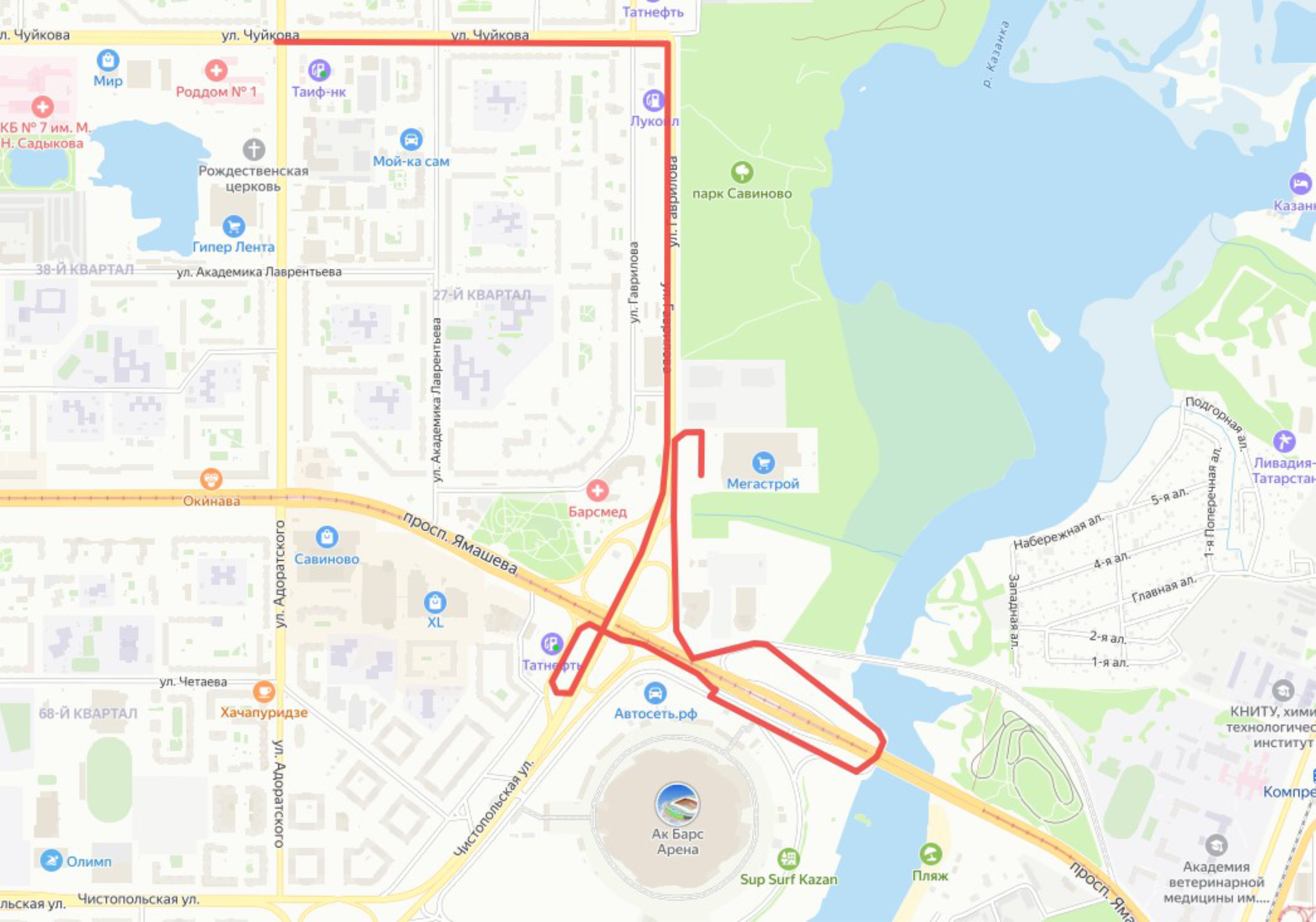 Маршрут проезда к гипермаркету на Гаврилова, 5 с 21 по 26 августа