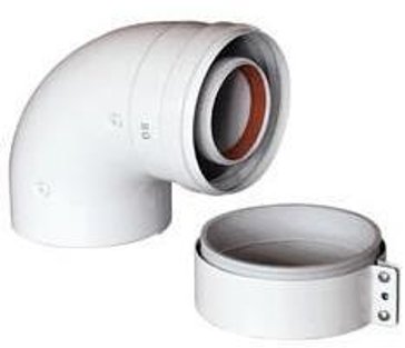Отвод Baxi KHG применяется при монтаже дымоотвода отопительных систем в качестве начального участка. Предназначен для изменения направления коаксиального дымохода на 90 градусов. В комплекте также имеется присоединительная муфта, при помощи которой отвод может подключатся к выходу котла.
