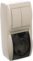 Выключатель 2 клав.и розетка с/з с крыш.вертикаль Ната крем.