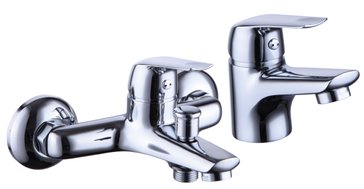 - Набор смесителей Рико СЕТ:Cмеситель для умывальника+смеситель для ванны с аксессуарами,хром