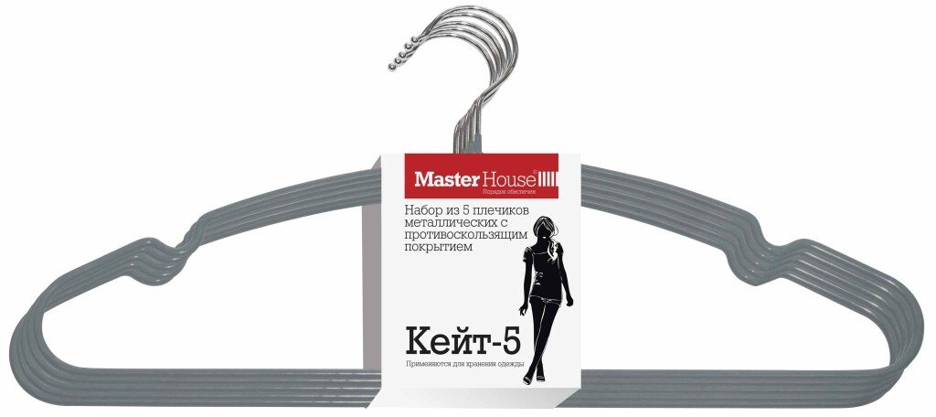 Набор из 5 плечиков металлических с противоскользящим покрытием, диаметр внутренней металлической проволоки 2,8мм, диаметр противоскользящего покрытия 3,5мм, 40*20см