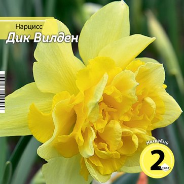 Нарцисс махровый Дик Вилден — многолетнее луковичное растение высотой 35–40 см с изящными цветками диаметром 8–10 см. Нарцисс Дик Вилден выделяется махровыми нежно желтыми цветками с лимонно-желтой серединой. От цветков исходит приятный нежный аромат, благоухающий по саду. Очень широко используется в садовом дизайне на клумбах в группах с другими многолетниками и отдельными посадками. Предпочитают влажную почву и при условии организации дренажа не боятся избыточной влаги или талых вод в осенне-весенний период, отлично развиваются на тяжелых и суглинистых почвах.В грунт высаживать в сентябре на глубину 10–15 см, в зависимости от размера луковицы, выдерживая расстояние 10–20 см.Уход заключается в своевременных поливах, рыхлении, подкормках, прополке сорняков.Первую подкормку проводить весной по всходам, вторую — в фазе выхода цветоноса, третью — во время полной бутонизации, четвертую — во время цветения.Выкапывать в сухую погоду, предварительно прекратив поливы на участке.