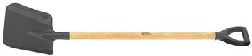 Поставляется в сборе с деревянным лакированным черенком и пластиковой рукояткой.