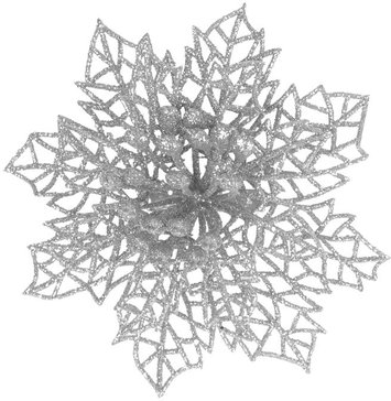 - Украшение подвесное Цветок Рождественник серебристый глиттер 120мм
