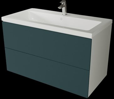 Элемент модульной мебели для ванной комнаты. У данного фасада очень эстетичный и современный вид.