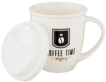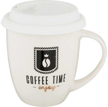 - Кружка Lefard Кофемания 370мл фарфор, силиконовая крышка, белый