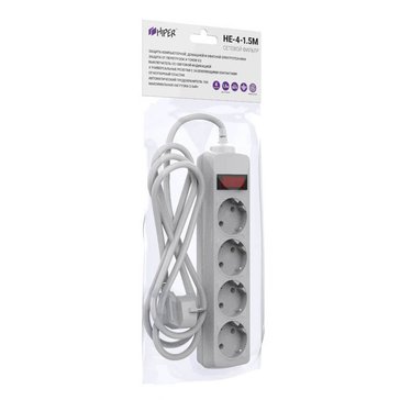- Фильтр сетевой HIPER 3х0,75 белый 1.5м
