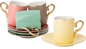 - Набор чайный Lefard на 4 персоны 220мл фарфор, серый, желтый, розовый, мятный