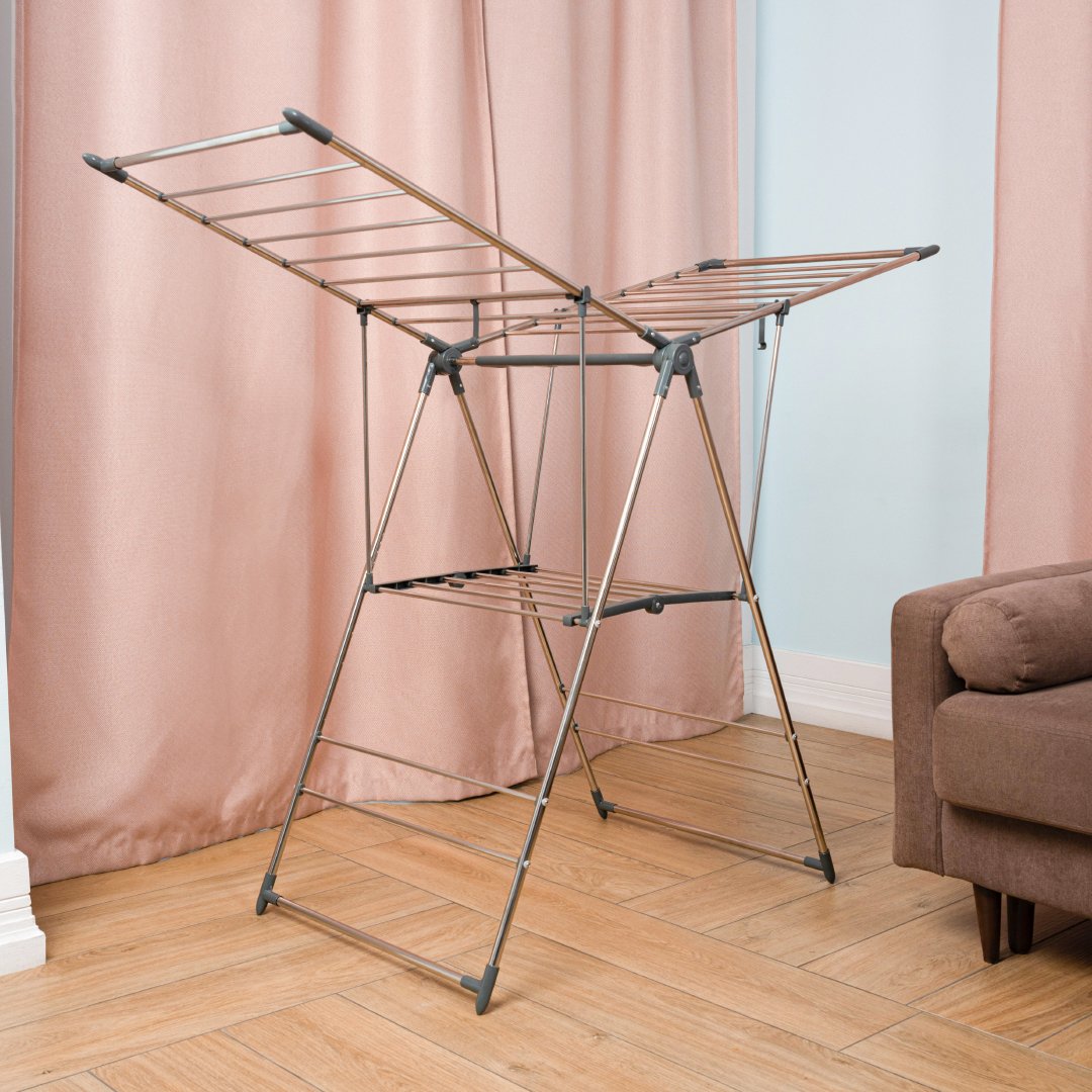 Благодаря гладкой поверхности нержавеющей стали и отсутствию острых краев, сушилка не оставляет следов и заломов на белье.