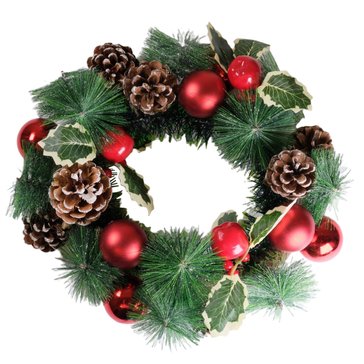 - Венок новогодний 30см с шарами и шишками SYWA-032117