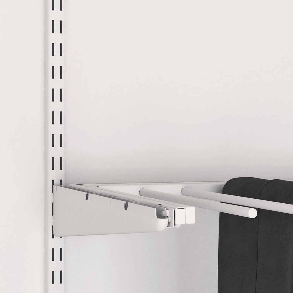 Стойка - это один из основных элементов системы хранения. Навешивается на рельс. На стойки устанавливаются кронштейны, на которые устнавливаюся элементы хранения(полки, обувницы, полки-корзины, выдвижные рамы и др.). Допускается использование без рельса