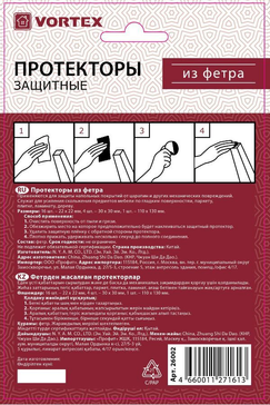 - Накладки для мебели защитные Vortex фетр (22х22мм, 30х30мм, 110х130мм) белые