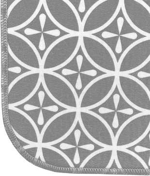 Крайняя обработана синтетической нитью в тон, что придает коврику законченный, аккуратный вид и текстуру износа кромки. В отличие от натуральных нитей, синтетические более стойкие и прочные в эксплуатации.