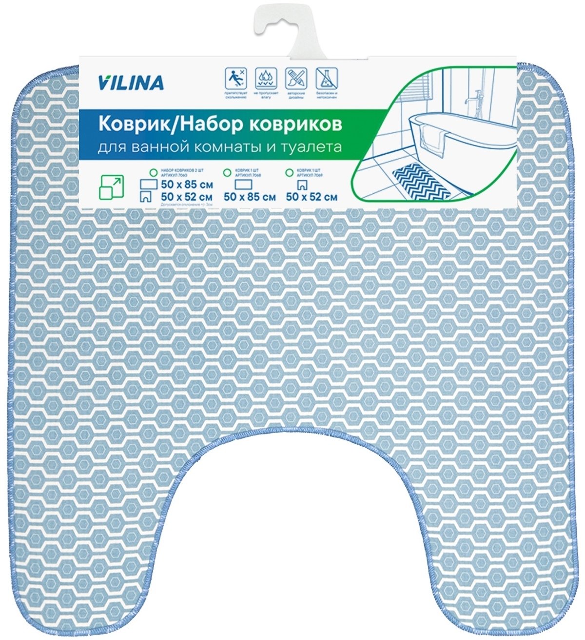 - Коврик для туалета 50x52см 7069, 001-blue, ПВХ