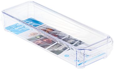 Органайзер для организации порядка в холодильнике.Размер подобран для наилучшего размещения на полках холодильника.Практичная конструкция прямоугольной формы с крышкой.Благодаря крышке Вы можете не волноваться, что внутрь попадёт пыль, грязь или влага. Это делает контейнер идеальным для хранения открытых упаковок с продуктами в холодильнике: запахи не будут смешиваться, а пища дольше останется свежей.Прозрачный пластик показывает содержимое. В передней части органайзер имеет удобную ручку с хватким выступом. Специальная конструкция позволяет составлять несколько органайзеров друг на друга. Безопасный и экологичный, подходит для хранения пищевых продуктов.Сохраняет внешний вид пластика при разных температурах. Органайзеры представлены разных объёмов, что позволит собрать уникальный набор, подходящий под Ваши потребности.