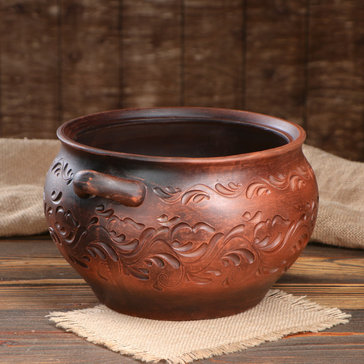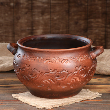 - Горшок духовой Красная глина 4,5л декор, микс, без крышки, красная глина