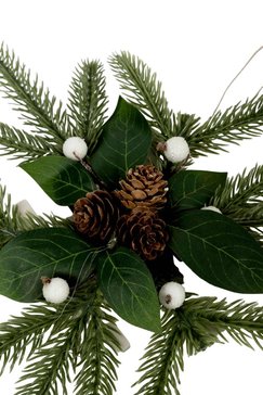Новогодняя декорация в виде венка зелёного цвета с шишками украсит Ваш интерьер в преддверии самого волшебного праздника в году. Декоративный венок можно повесить на входную дверь дома или квартиры, на межкомнатные двери, на стену, а также с наружной стороны дома. Рождественский венок, украшенный различными элементами добавит в Ваш интерьер частичку новогоднего уюта и сказочной атмосферы.
