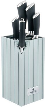 Подставка для ножей – необходимый аксессуар на каждой кухне. Подставка AGNESS с наполнителем легко и удобно решает проблему хранения ножей, защищая лезвия ножей от загрязнения. Преимущества подставки AGNESS:
