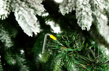 Собрать эту ёлочку будет несложно, ведь тип крепления у неё вставной (крючки), выполенны из оцинкованного металла и не подвержены коррозии. 100%-но литые ветки с прожилкой не мнутся и не теряют форму с годами. Форма ели не широкая и подойдет для любых помещений.
