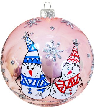 - Украшение подвесное Шар Два снеговичка d6,5см, стекло