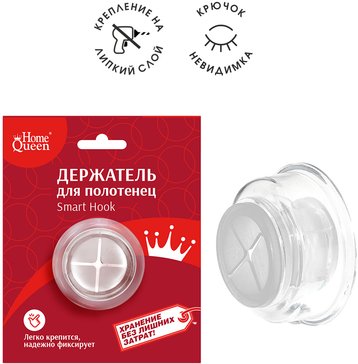 - Держатель д/полотенец HomeQueen Smart Hook 5,3х2,5см полипропилен