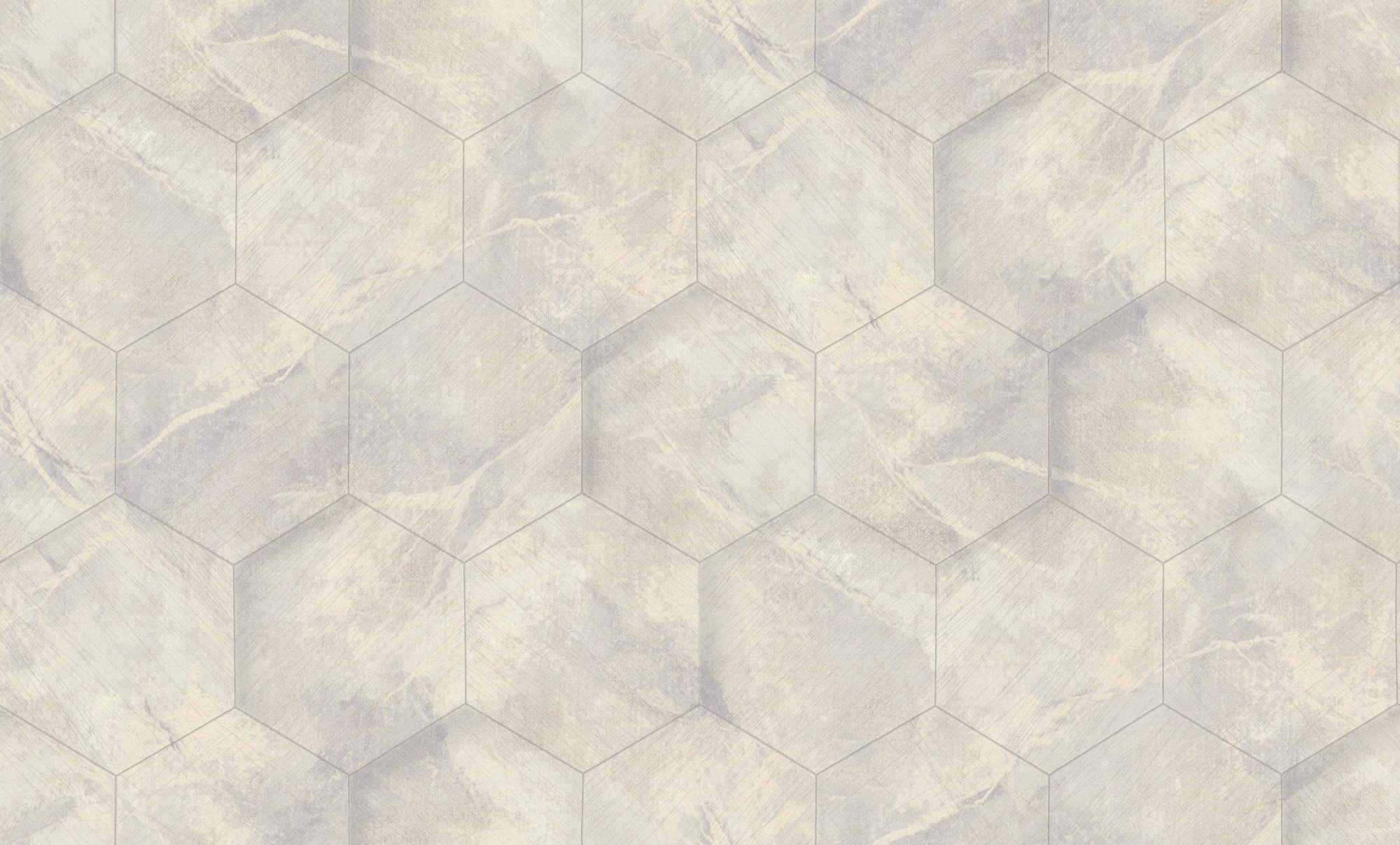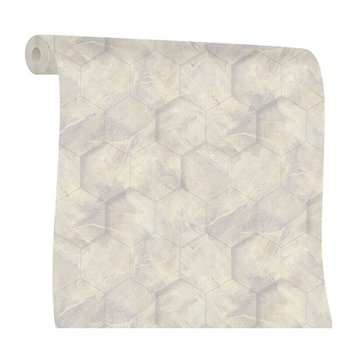 Коллекция обоев «Hexagon» — это классический дуэт из мотива и фона. Нежные оттенки и иллюзия мраморной плитки с множеством характерных переливов,прекрасно сочетаются между собой и образуют единую композицию. Различные тонкие линии словно мелкие трещины, формируют между собой отдельный узор. Стыки у плит покрыты жемчужным напылением что придает узору дополнительный объем. Фон из коллекции словно срез мрамора.