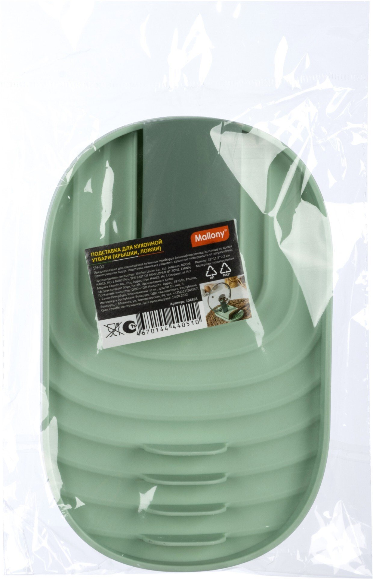- Подставка д/крышек, ложек Mallony 18х11,5х2,2см полипропилен, зеленый