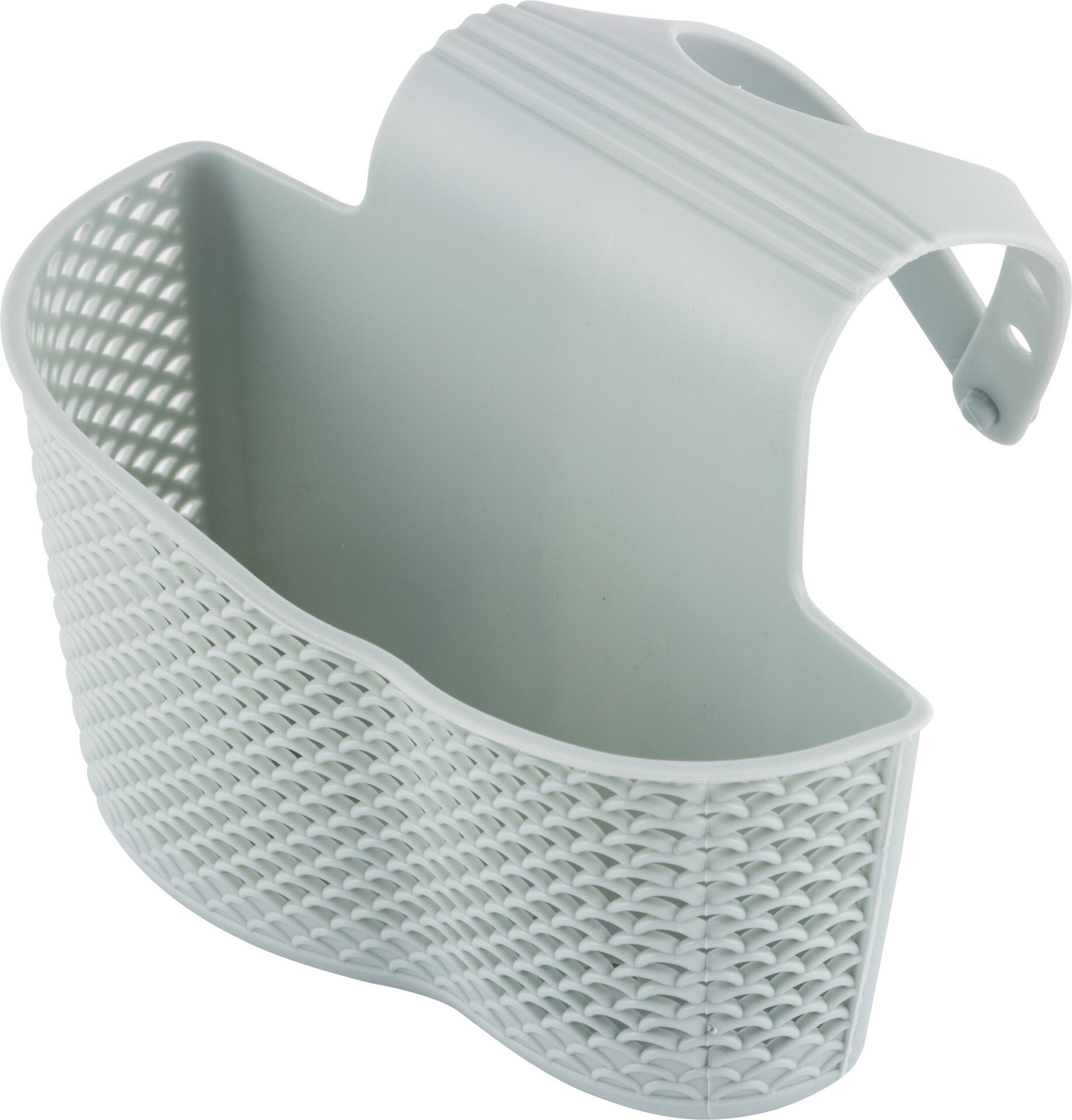 Гибкий пластиковый держатель для губки и кухонных мелочей крепится на смеситель.
