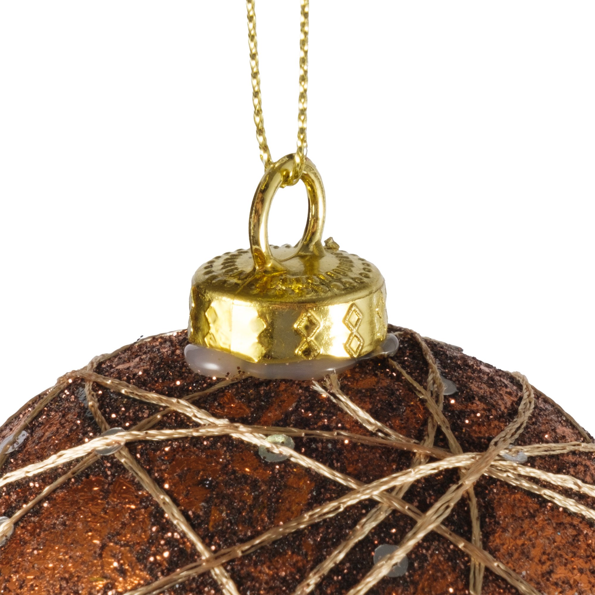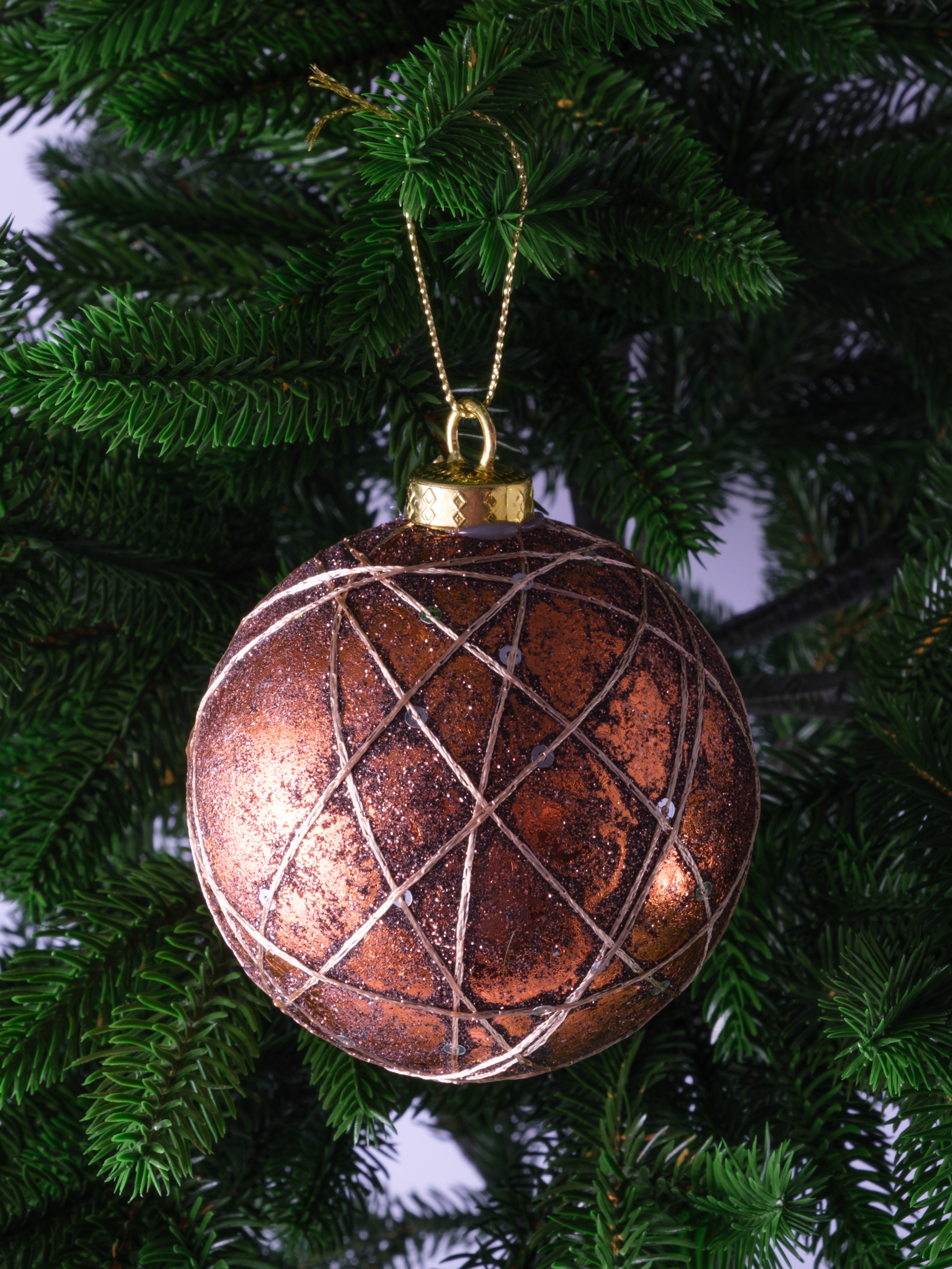Чтобы декорировать елочку модно и элегантно, подвески на ней должны сочетаться между собой и с убранством комнаты. Важно не просто развесить свой "клад", но и хорошо продумать, где поместить ту или иную деталь. Один из самых простых способов решения этой задачи - выбрать елочные шарики одной цветовой гаммы. В этом вам поможет изящный шар с рисунком в коричневом оттенком, который сделает украшение вашей новогодней елки еще более привлекательным.