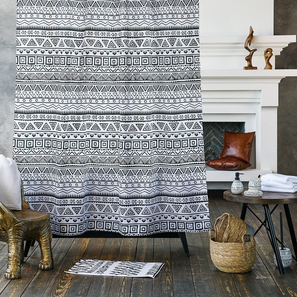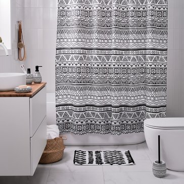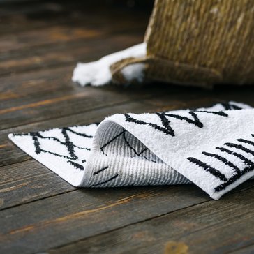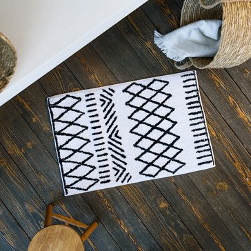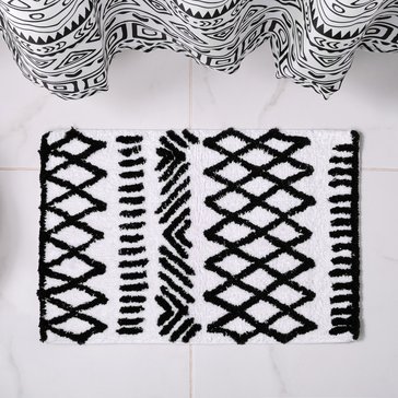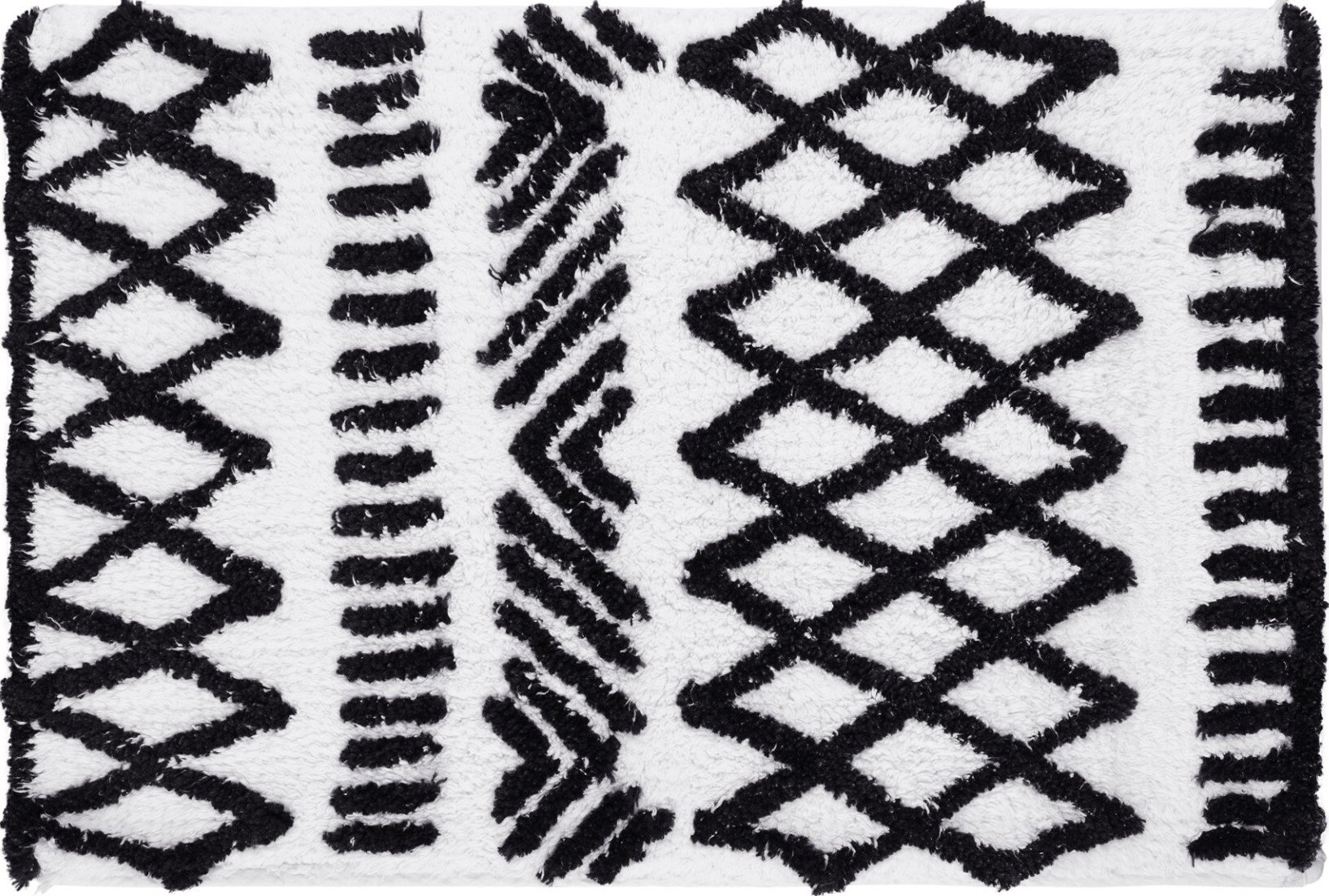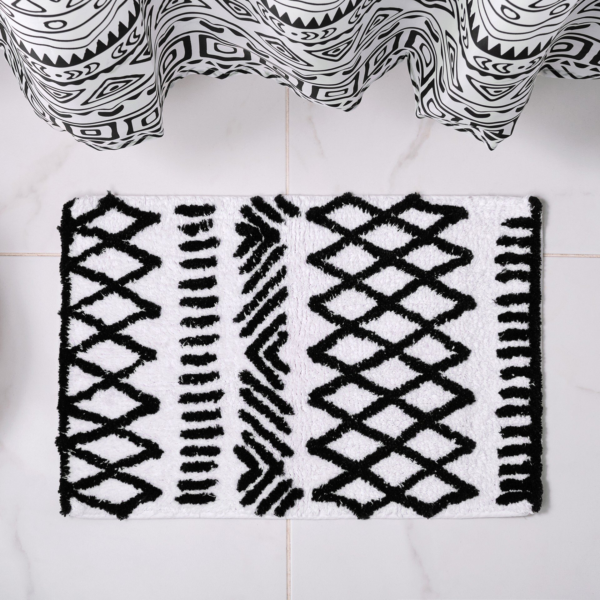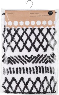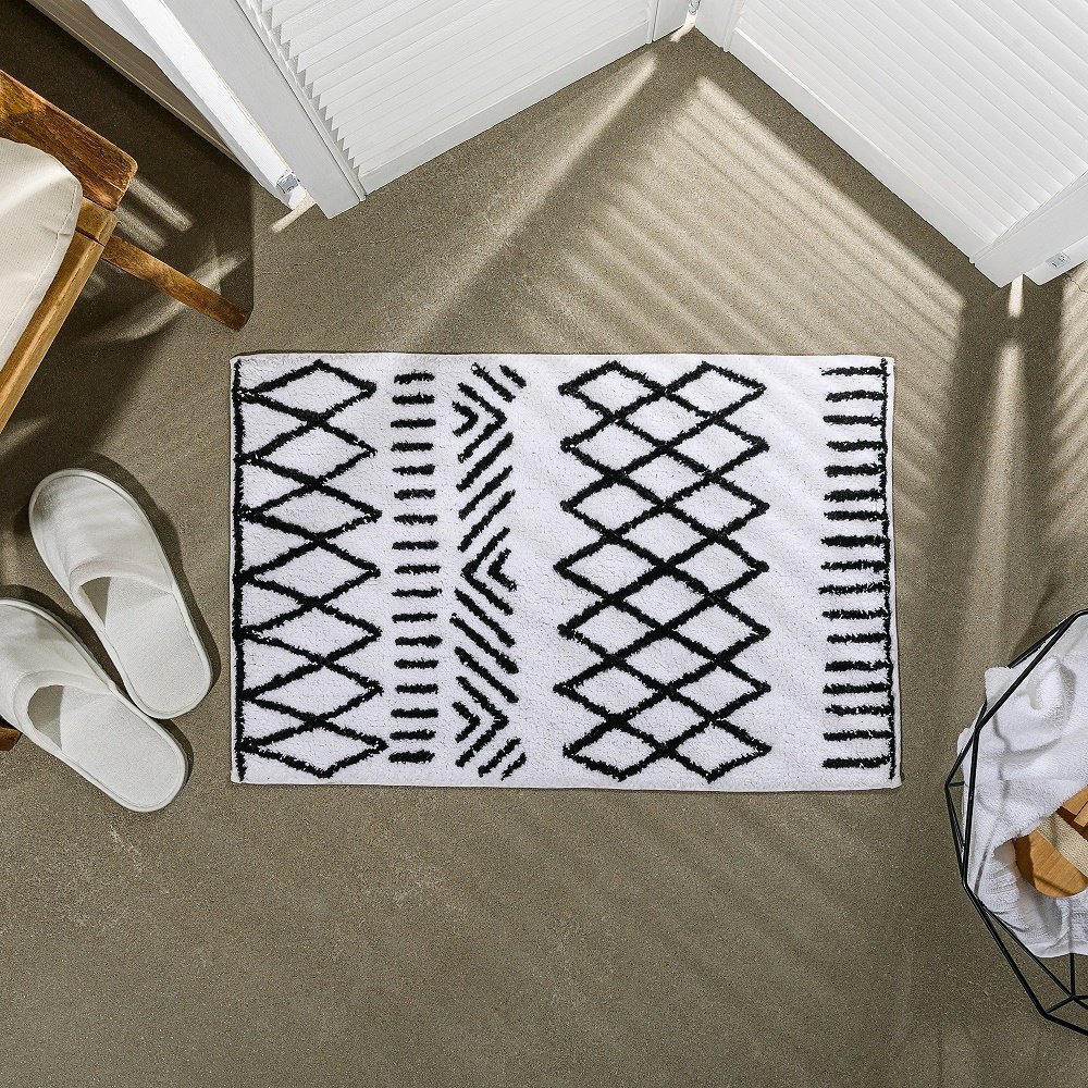 Мягкий коврик для ванной комнаты чёрно-белого цвета размером 40 х 60 см. Благодаря специальному покрытию коврик не скользит, что делает его эксплуатации комфортной и безопасной. Материал изделия отлично впитывает влагу и при этом быстро сохнет. Геометрический рисунок вдохновлён этническими мотивами кочевых народов. Аксессуар отлично смотрится в сочетании с другими элементами коллекции Nomands.