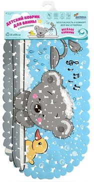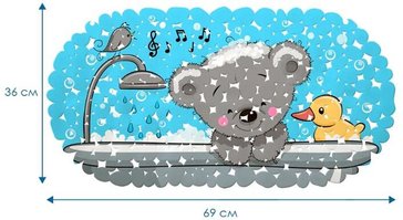 - Коврик в ванну 36х69см Мишка в ванне 7071-002 голубой, ПВХ
