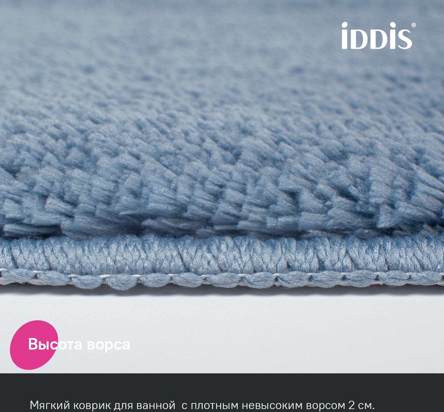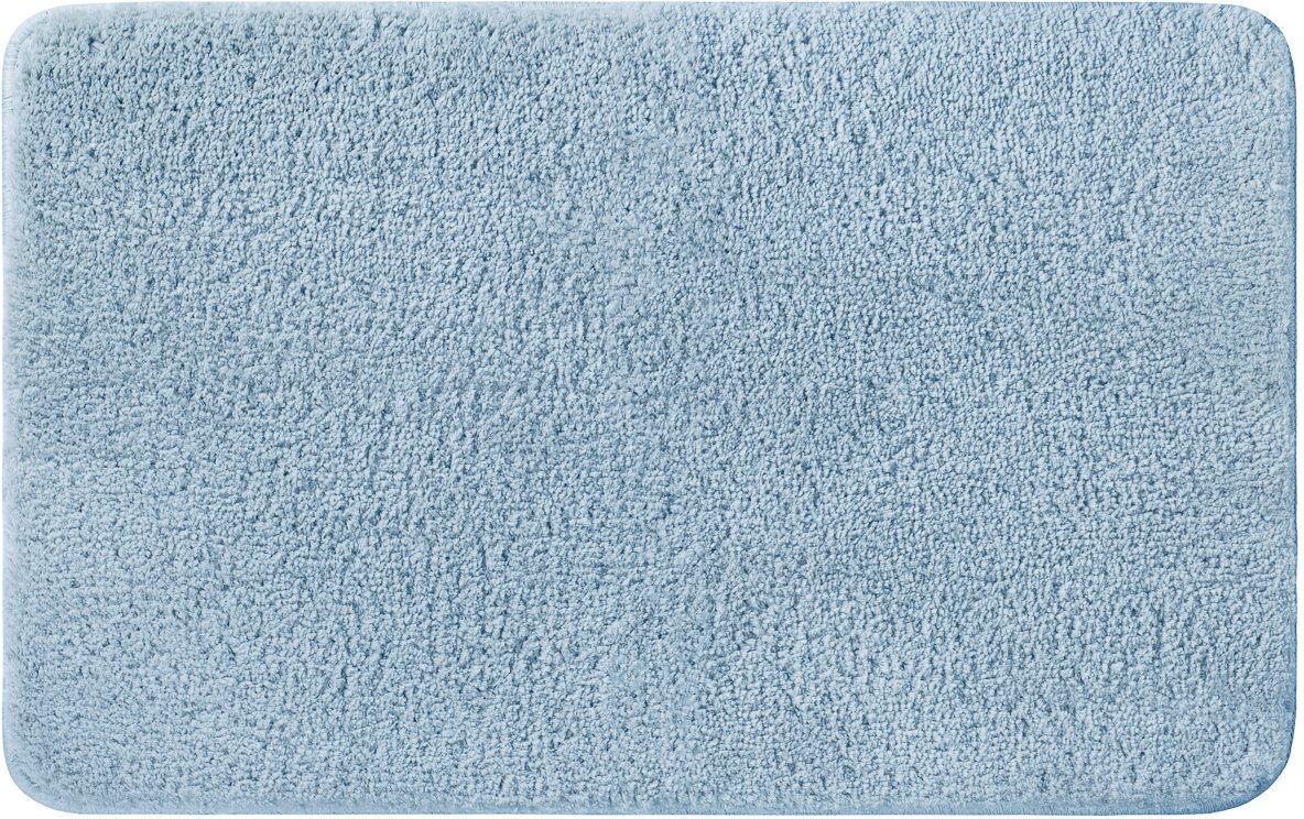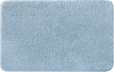 Мягкий коврик для ванной светло-синего цвета с плотным высоким ворсом (2 см), очень приятный на ощупь. Стриженый ворс из микрофибры отлично держит форму, легко чистится и быстро сохнет. Коврик подойдет для ванной и туалета.