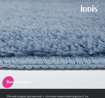 - Коврик для ванной комнаты 70x120см IDDIS BSQL03Mi12, синий, микрофибра
