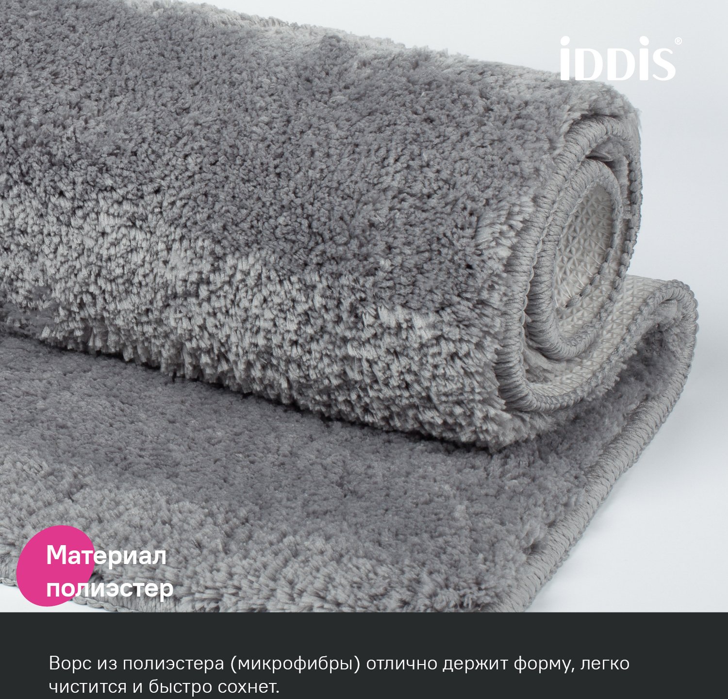 - Коврик для ванной комнаты 50x80см IDDIS, BSQS02Mi12 серый, микрофибра