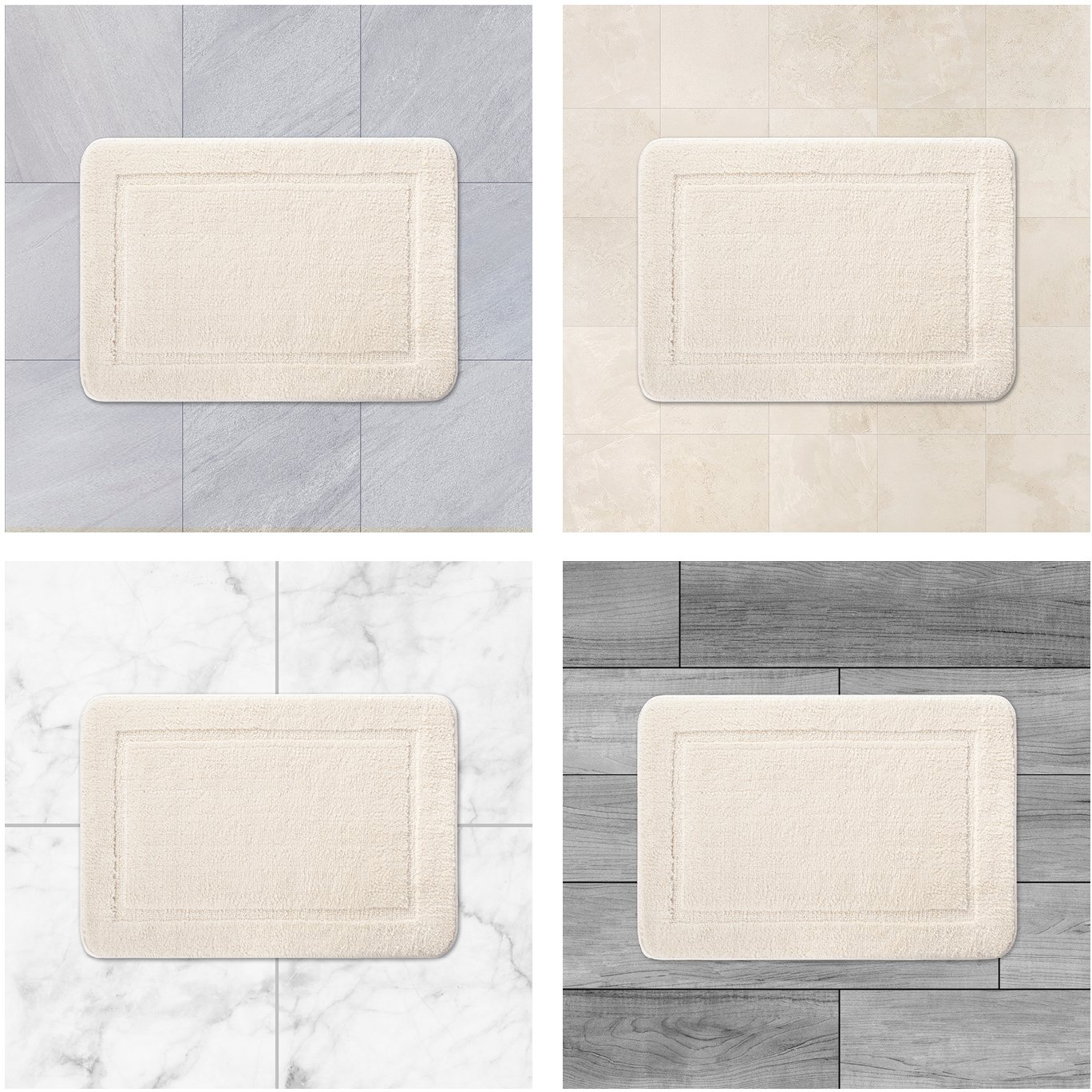 -22%Мягкий коврик для ванной светло-бежевого цвета с плотным невысоким ворсом (1 см), очень приятный на ощупь. Ворс из микрофибры отлично держит форму, легко чистится и быстро сохнет.