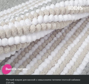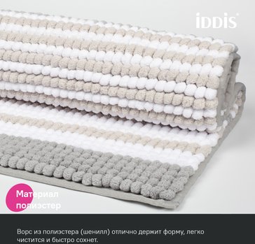 - Коврик для ванной комнаты 50x80см IDDIS, BC06P58i12, серый, шенилл
