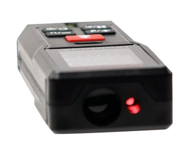 Мощность излучения прибора составляет <1 мВт. Это позволяет использовать дальномер в труднодоступных местах, в том числе в колодцах и шахтах. Класс лазера 2 не вызывает повреждения глаз при кратковременном воздействии. Устройство имеет 2 точки начала отсчета. Помимо расстояния между объектами дальномер способен измерять площадь и объем помещений. Автоматическое отключение лазера происходит через 30 сек, само устройство отключается через 3 мин бездействия.
