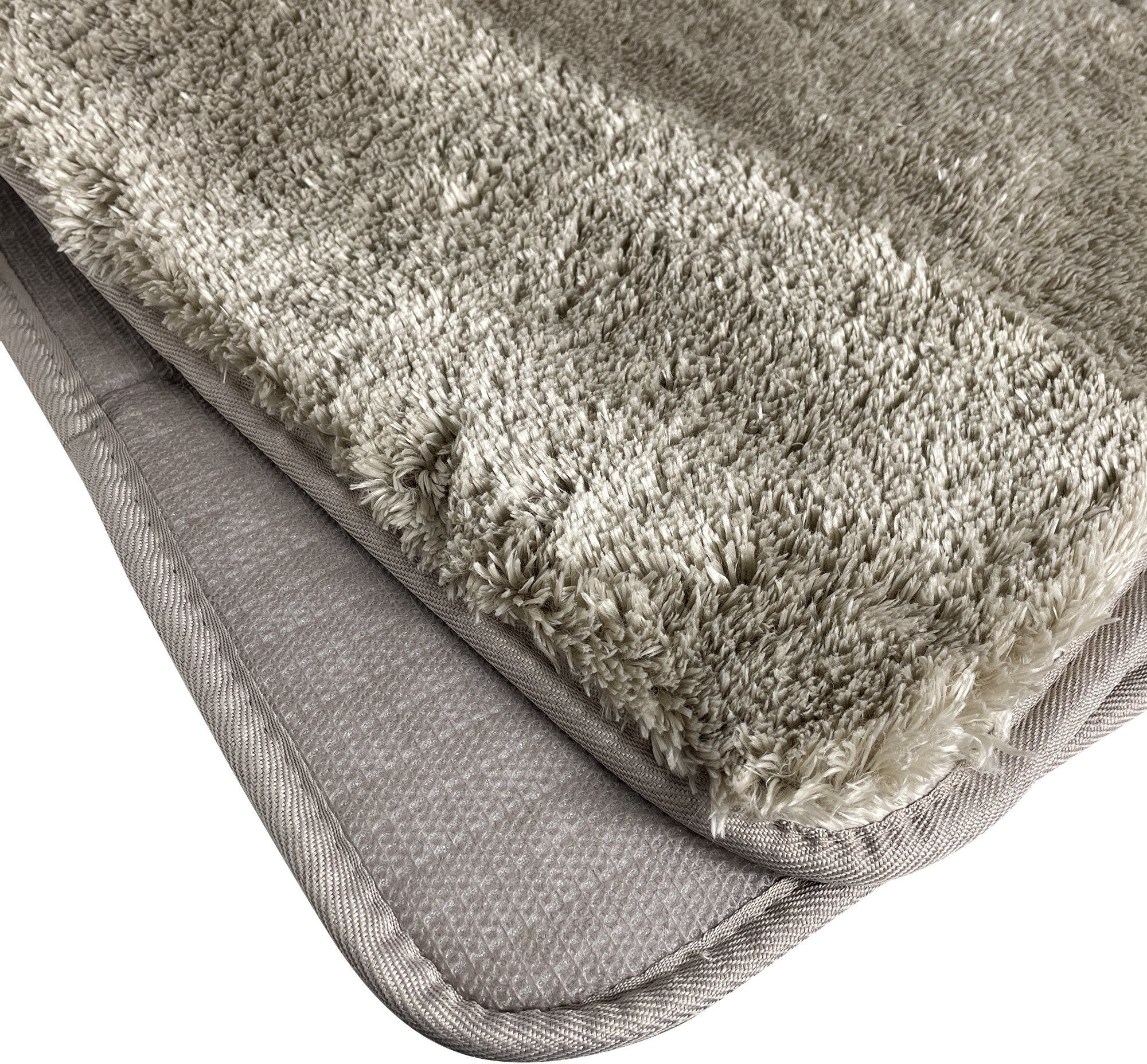 Позвольте себе окунуться в мягкость и комфорт каждый раз, когда вы выходите из душа или ванны. Наш коврик SERENITY SPA из микрофибры - это не просто аксессуар для ванной, это источник наслаждения и релаксации. Отныне каждое ваше ванное время станет незабываемым благодаря этому невероятно мягкому и функциональному аксессуару. Коврик SERENITY SPA с высоким ворсом серебристо-бежевого цвета предлагает превосходный комфорт и эстетическое удовольствие в вашей ванной комнате. Его переливчатый оттенок добавит шарма в вашу обстановку.