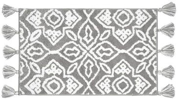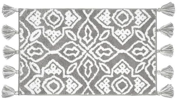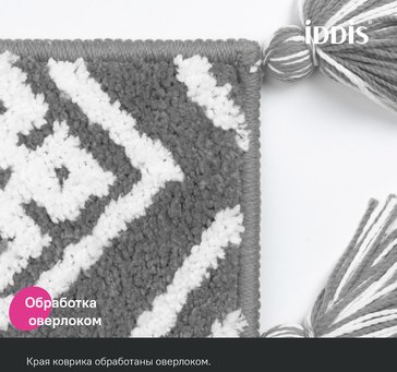 Мягкий бежевый коврик для ванной с декоративными пушистыми кисточками и белым узором, очень приятный на ощупь. Ворс из микрофибры отлично держит форму, легко чистится и быстро сохнет. Коврик подойдет для ванной и туалета, а также поможет создать уют в спальне или гостиной.