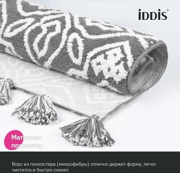 • Коврик противоскользящий: основа из экологичной термопластичной резины (TPR) позволяет не скользить на гладком и влажном кафеле. Подходит для использования в помещениях с теплыми полами.