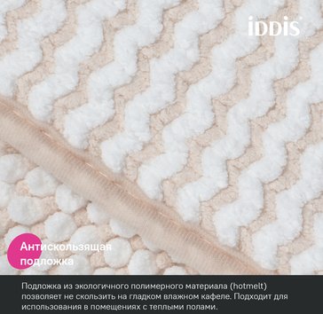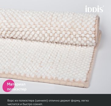 - Коврик для ванной комнаты, 50x80см, шенилл, бежевый, IDDIS, BC02P58i12