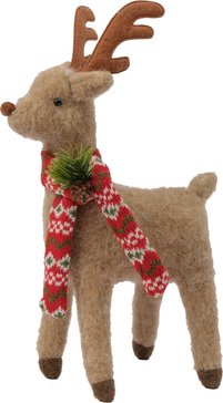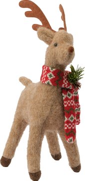 Олень имеет размеры 36 см, что делает его идеальным для установки на столе, полке или камине. Изготовленный из высококачественных материалов, он будет радовать вас своим присутствием на протяжении всех новогодних праздников.