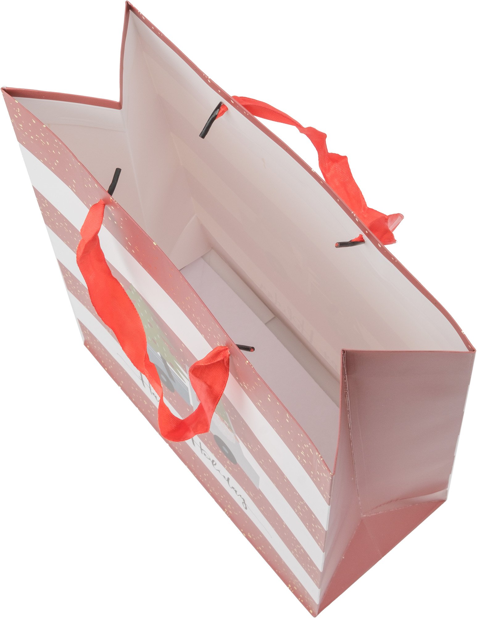 Размеры пакета — 26x32x12 см, что позволяет упаковать даже самые большие подарки. Высококачественная бумага плотностью 210 г/м² гарантирует прочность и долговечность изделия.