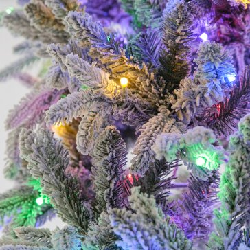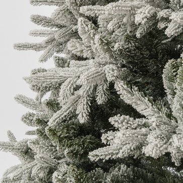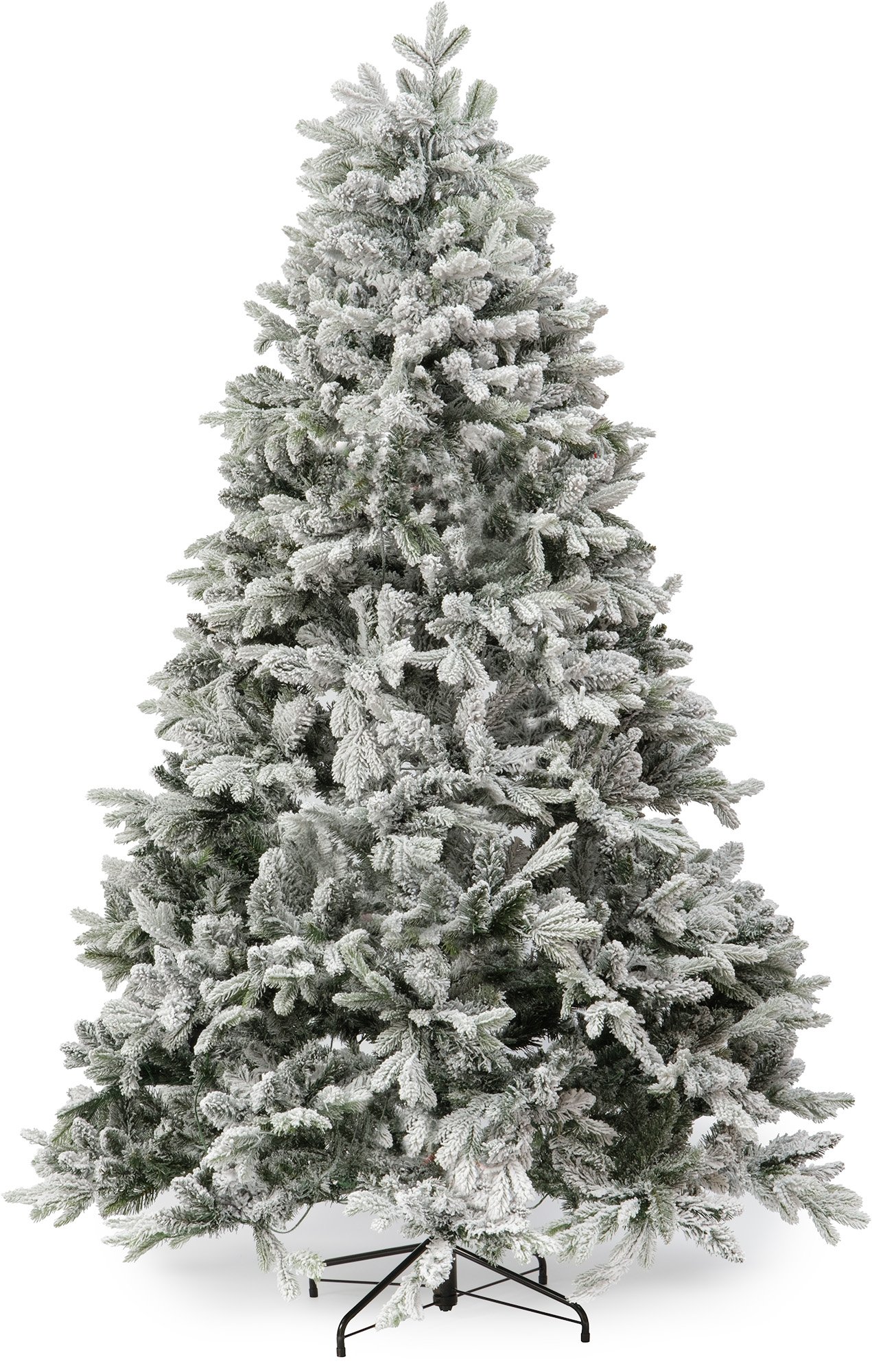 флокированная елка, с эффектом густой заснеженности, с вплетенной LED-гирляндой, теплый белый свет