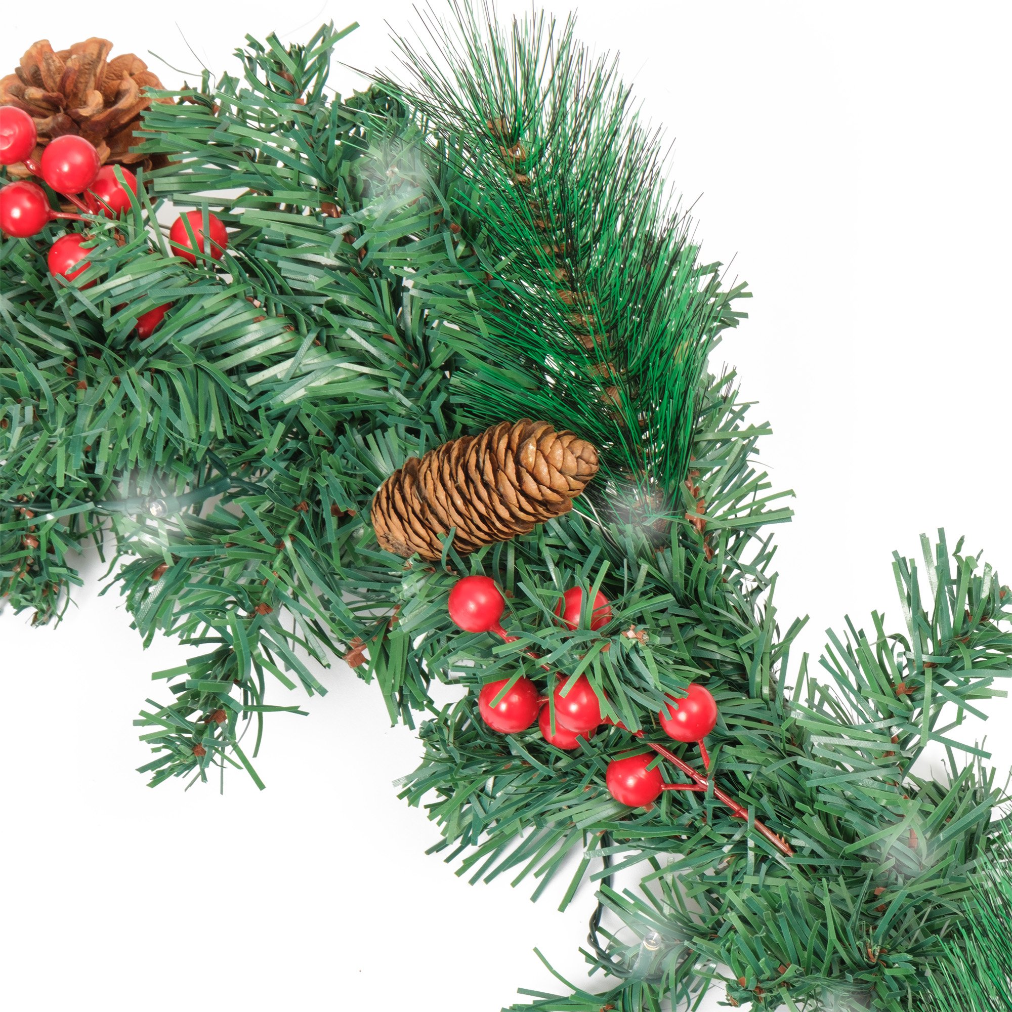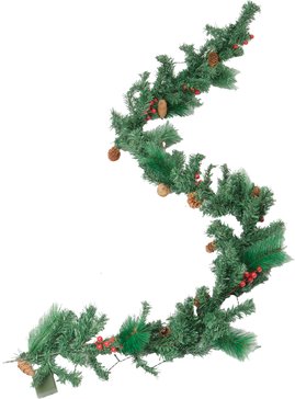 - Гирлянда-хвоя искусственная 200х30см с шишками/ягодами, подсветка 30LED, теплый белый свет, ПВХ, SYTT-0924002