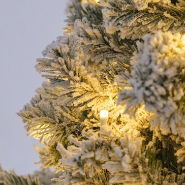 флокированная елка, заснеженная хвоя, мягкие иголки, с вплетенной LED-гирляндой, теплый белый свет