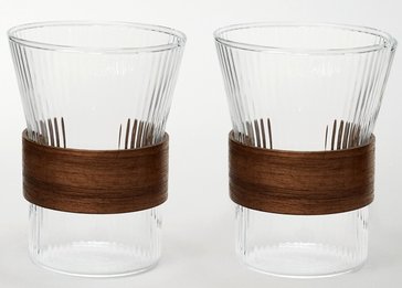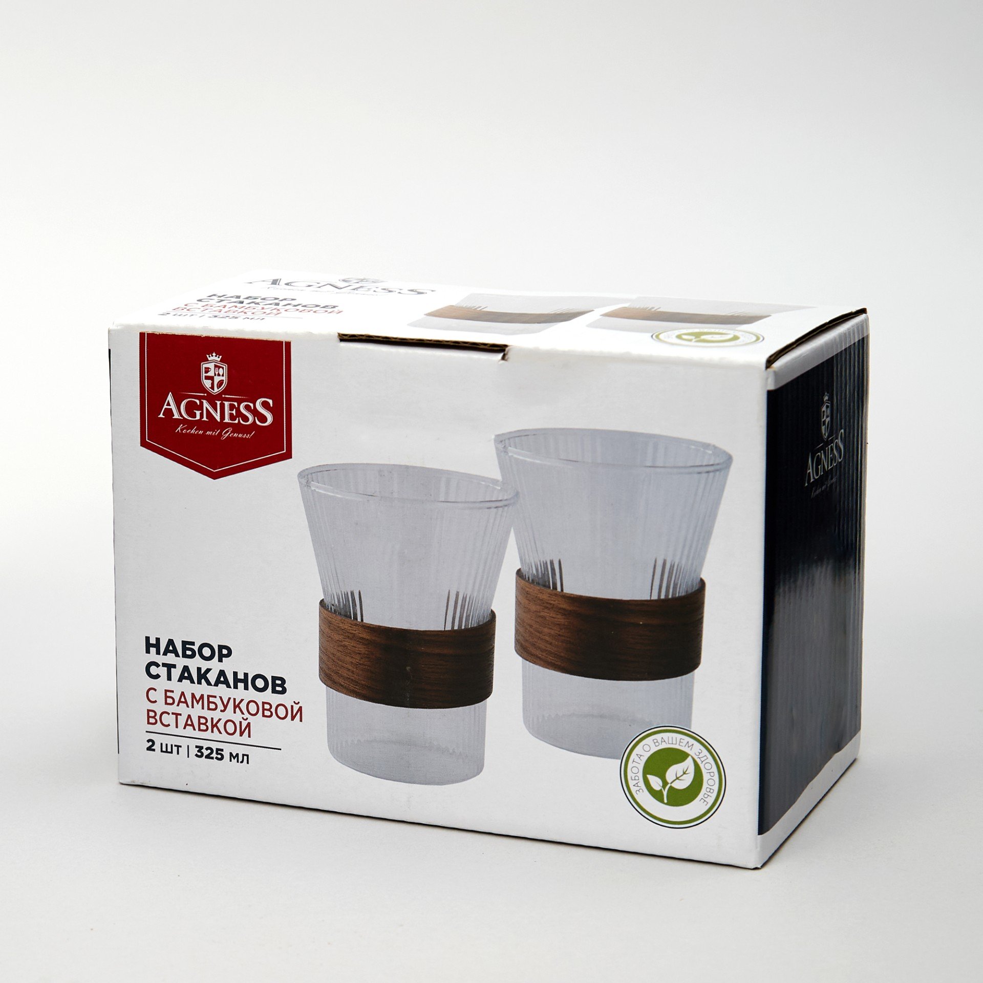 - Набор стаканов Agness 325мл 2шт низкие, стекло, вставка бамбук