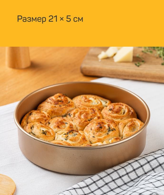 Особенности: Круглая форма для выпечки Клондайк Размер: 21x5 см. Улучшенное антипригарное покрытие GMM высококачественная углеродистая сталь 0,6 мм.