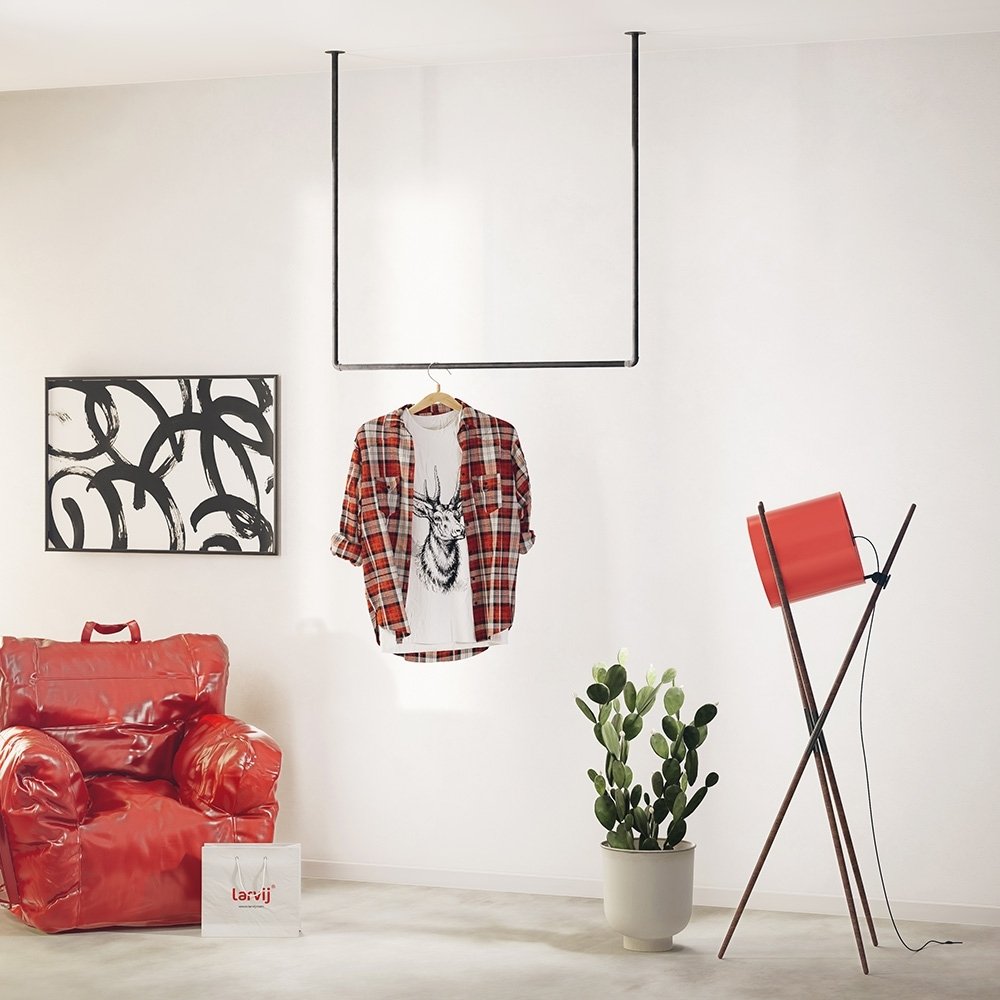 На трубе-перекладине поместятся более 8 вешалок с одеждой. Комплект также подойдет для хранения различных аксессуаров. При таком хранении вещи проветриваются, остаются всегда на виду и дольше сохраняют опрятный вид. Современный и функциональный вариант организации порядка в стиле лофт. Не только место хранения, но и стильный элемент интерьера, который будет радовать вас каждый раз, когда вы будете использовать его.