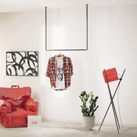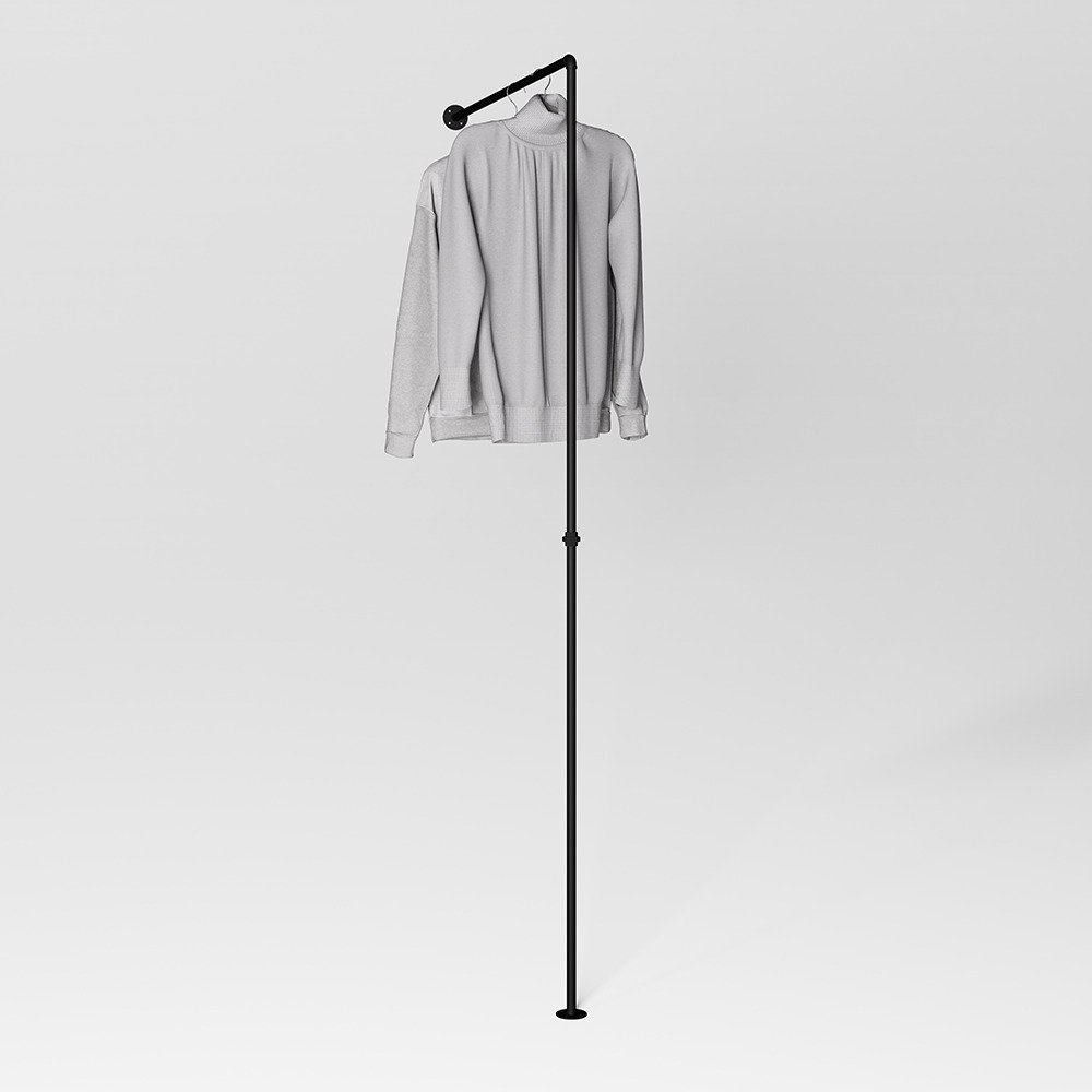 PIPE05BL - идеальный вариант для организации хранения длинной верхней одежды, платьев, юбок, а также брюк и штанов в полную длину. Не менее практичным решением окажется размещение внизу небольшого стеллажа или тумбы с бельем или сложенной одеждой. Комплект удачно впишется и в качестве держателя подвесного светильника в зоне отдыха или прикроватном пространстве.